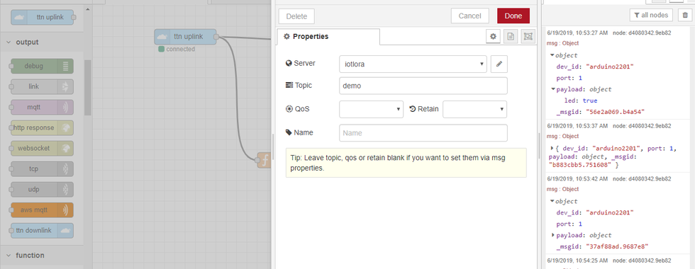step-6 Now drag and drop the mqtt from output and open it by double click.